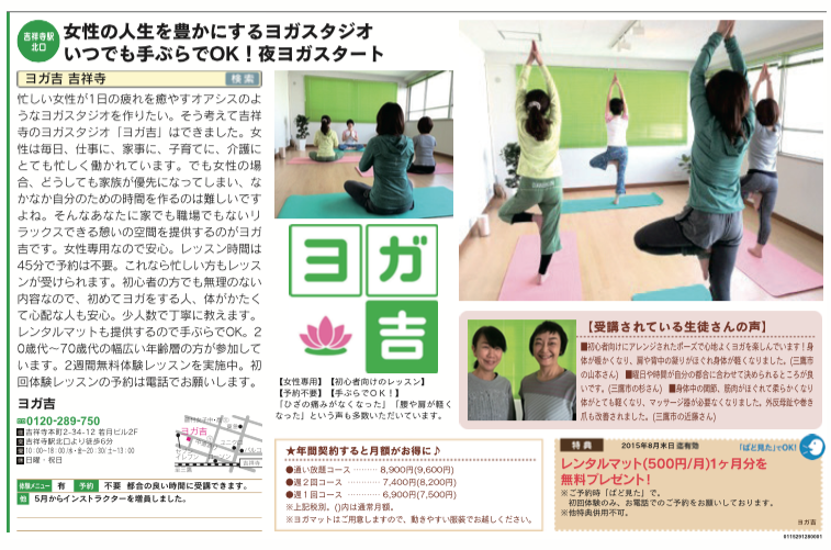 7月24日発行の「ぱど」に「ヨガ吉」が掲載されました。