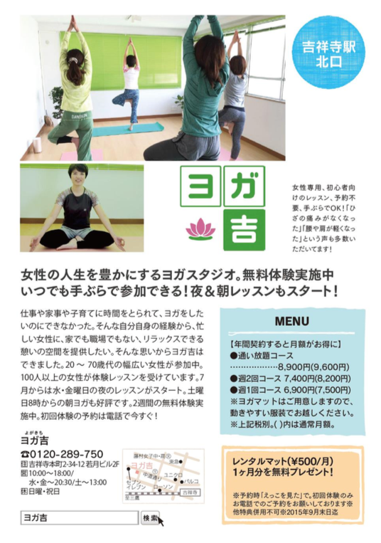 吉祥寺で配布されています情報誌ECCO!にヨガ吉が掲載されました。